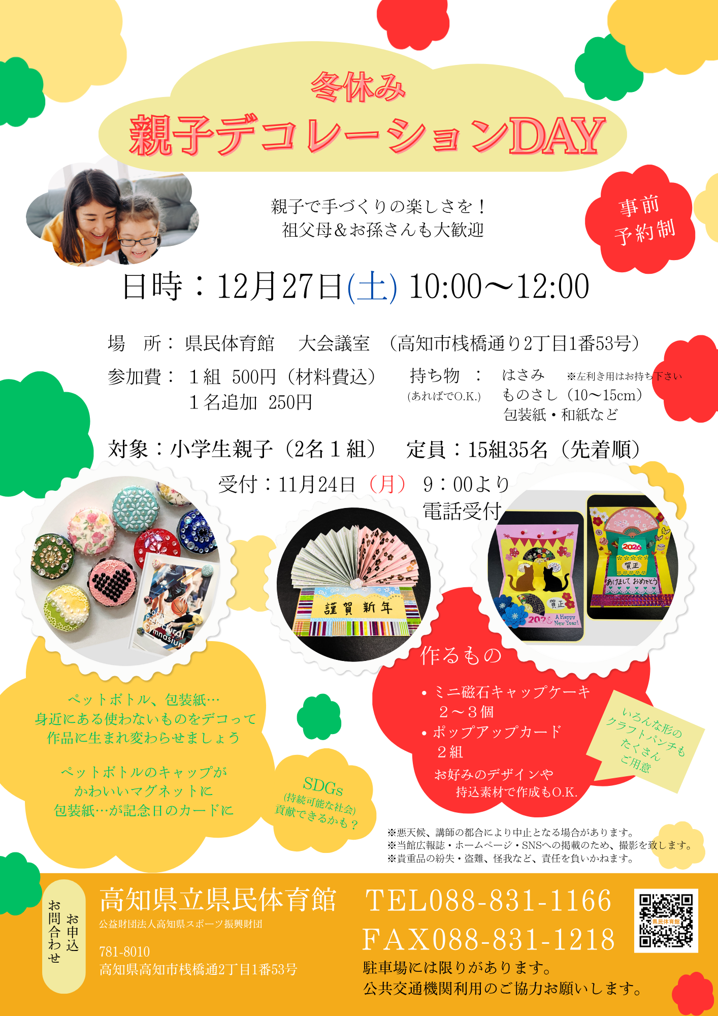 【参 加 費】 1組500円 小学生1名追加250円 ※保護者1名につき、小学生2名まで受付可